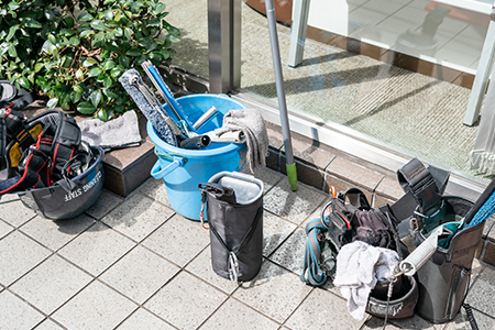 朝礼参加、安全ミーティング、工事の打合せ後、資機材を設置します。